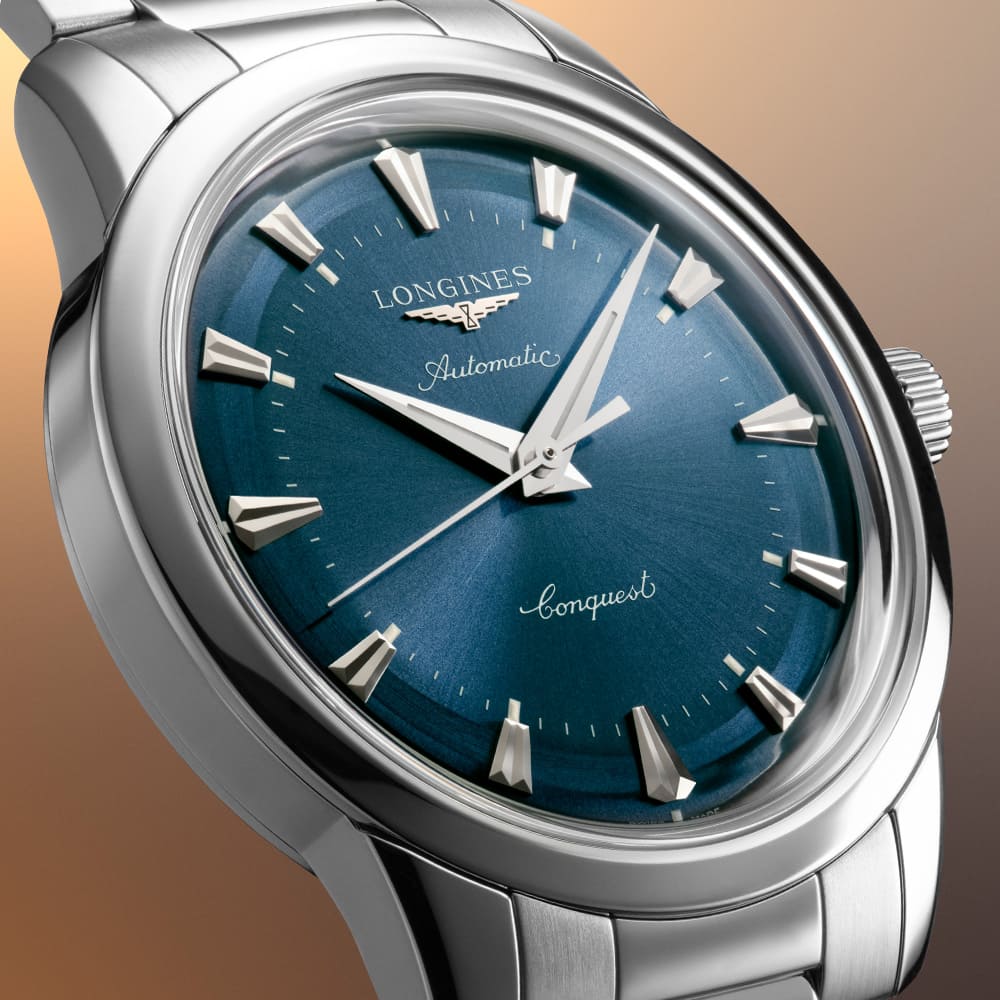 Die neue Conquest Heritage mit blau lackiertem Zifferblatt bringt den Geist der 1950er in die Gegenwart. Sie ist technisch auf Höhe der Zeit und ästhetisch eine Hommage den Glanz vergangener Jahrzehnte.