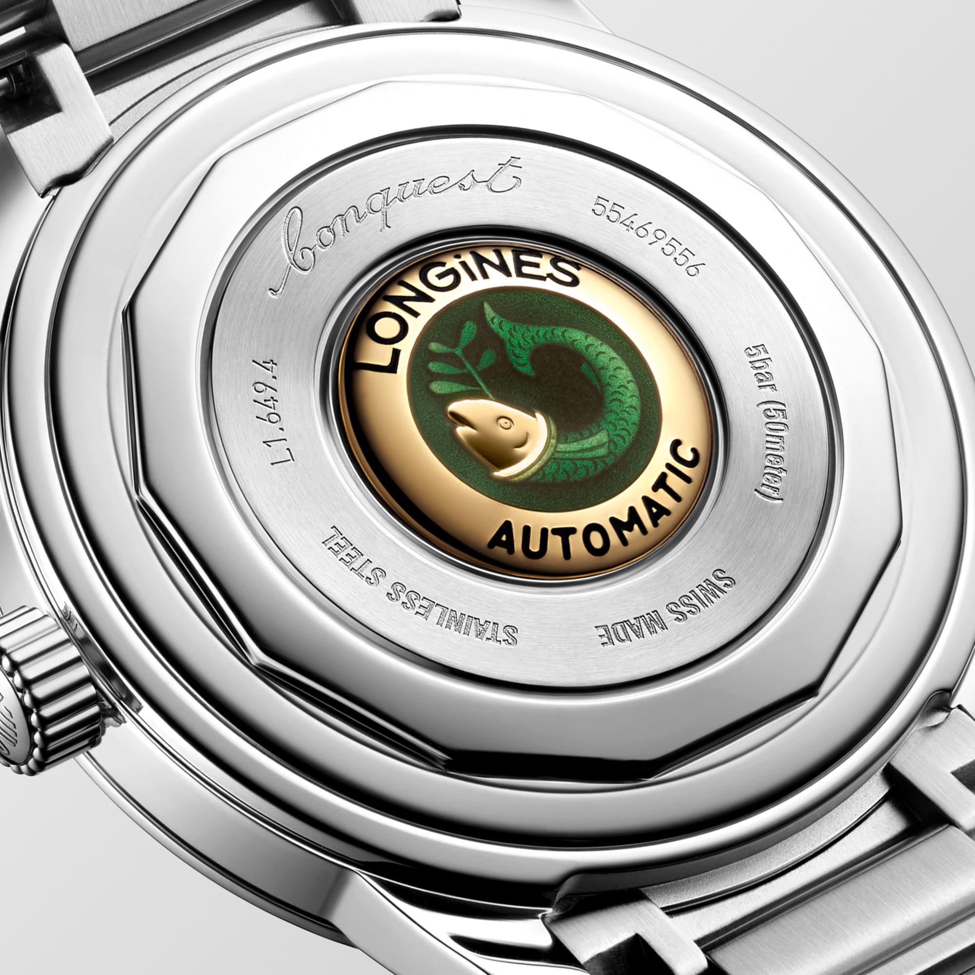 Verschraubter Gehäuseboden, Medaillon aus 18 Karat Gold mit Fisch-Motiv