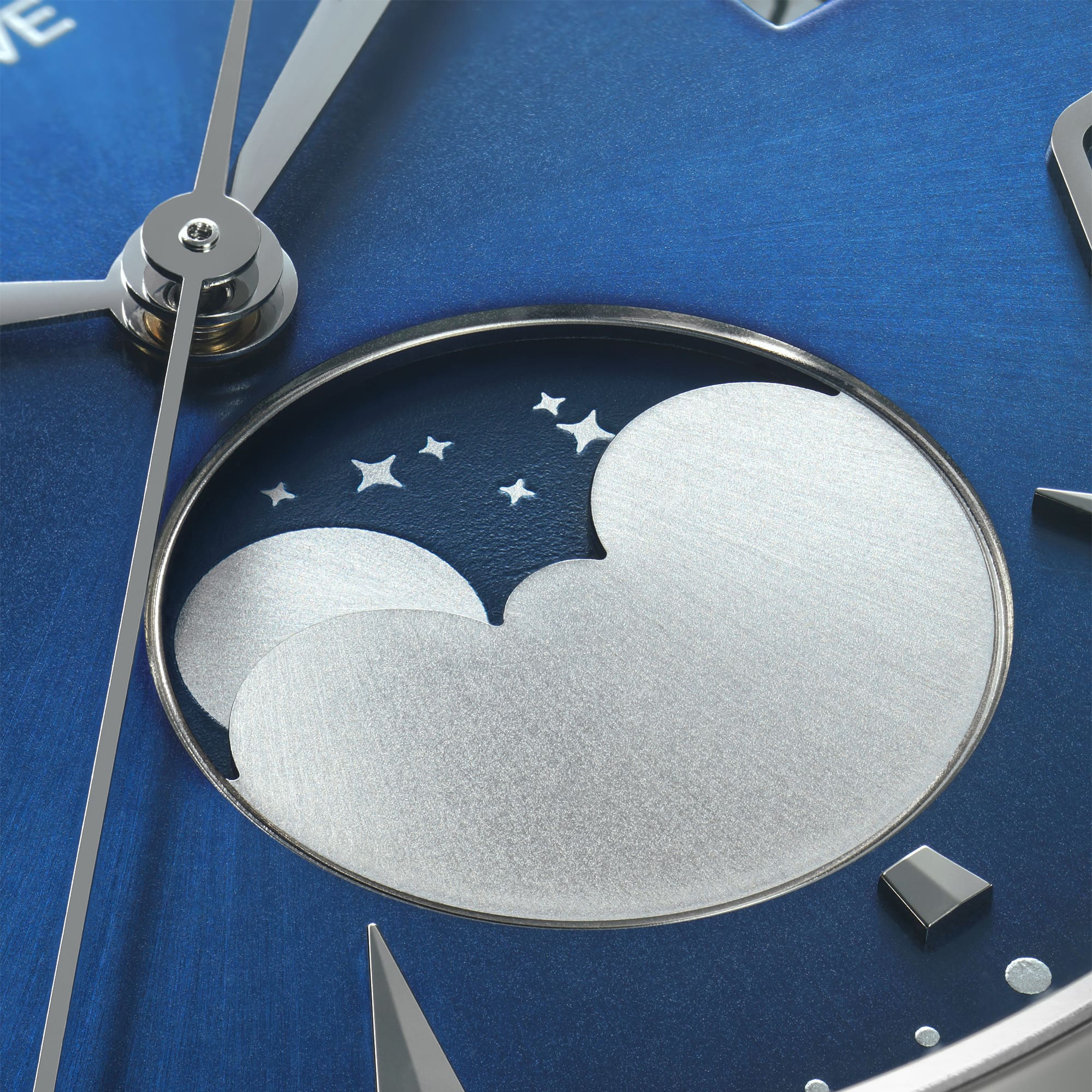 Funktionen 3-Zeiger, Mondphase, Datum, Stunden, Minuten, Sekunden, Datum, Mondphasenanzeige